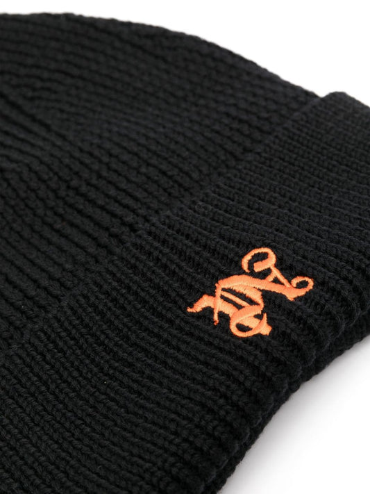 Palm Angels - Classic Logo Ribbed Beanie - Nero