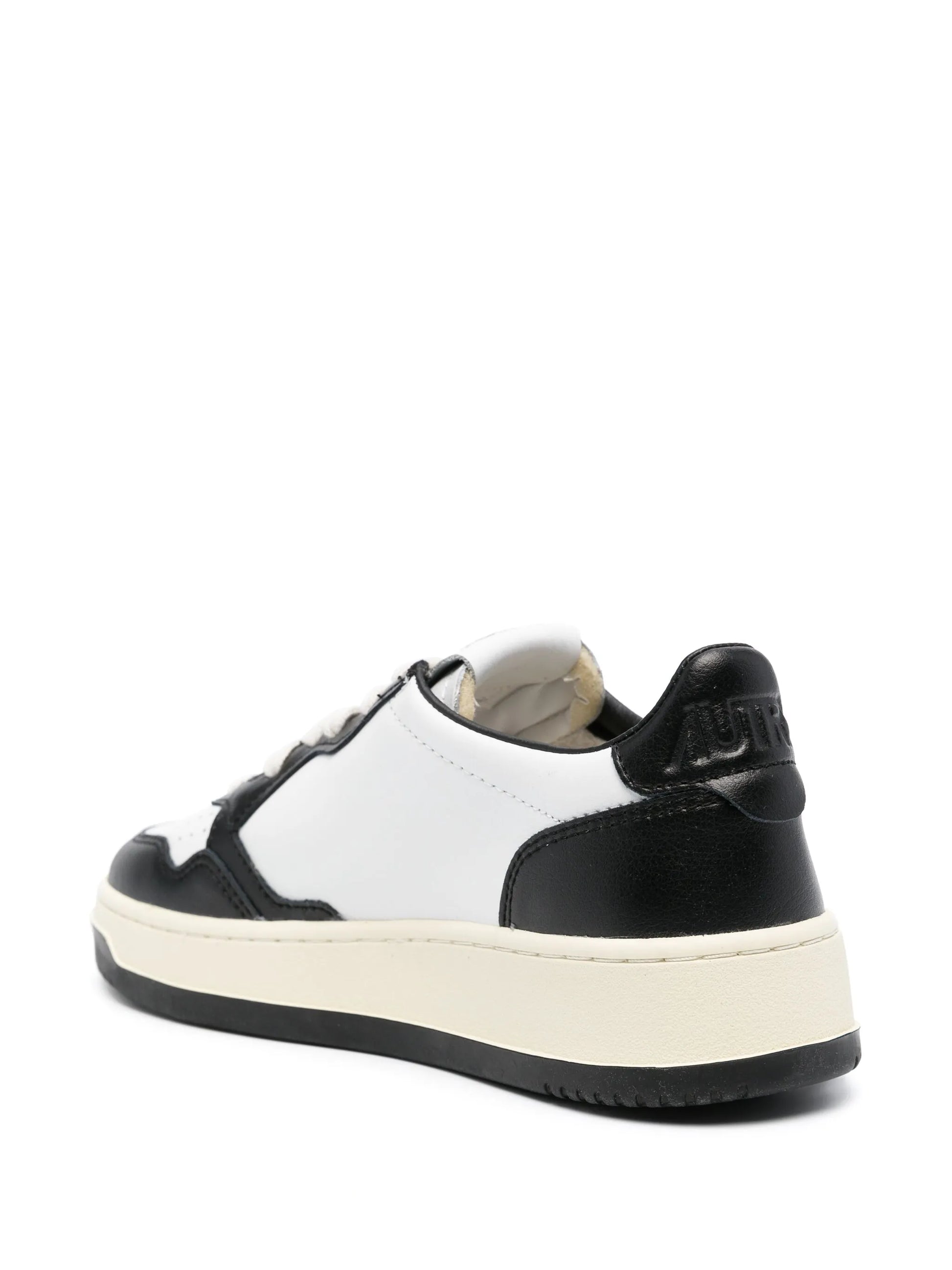 Realizzata in pelle morbida dall'aspetto autentico, si caratterizza per il deciso motivo color block in bianco e nero e la suola in gomma naturale con il battistrada nero che scandisce il ritmo dei tuoi passi.