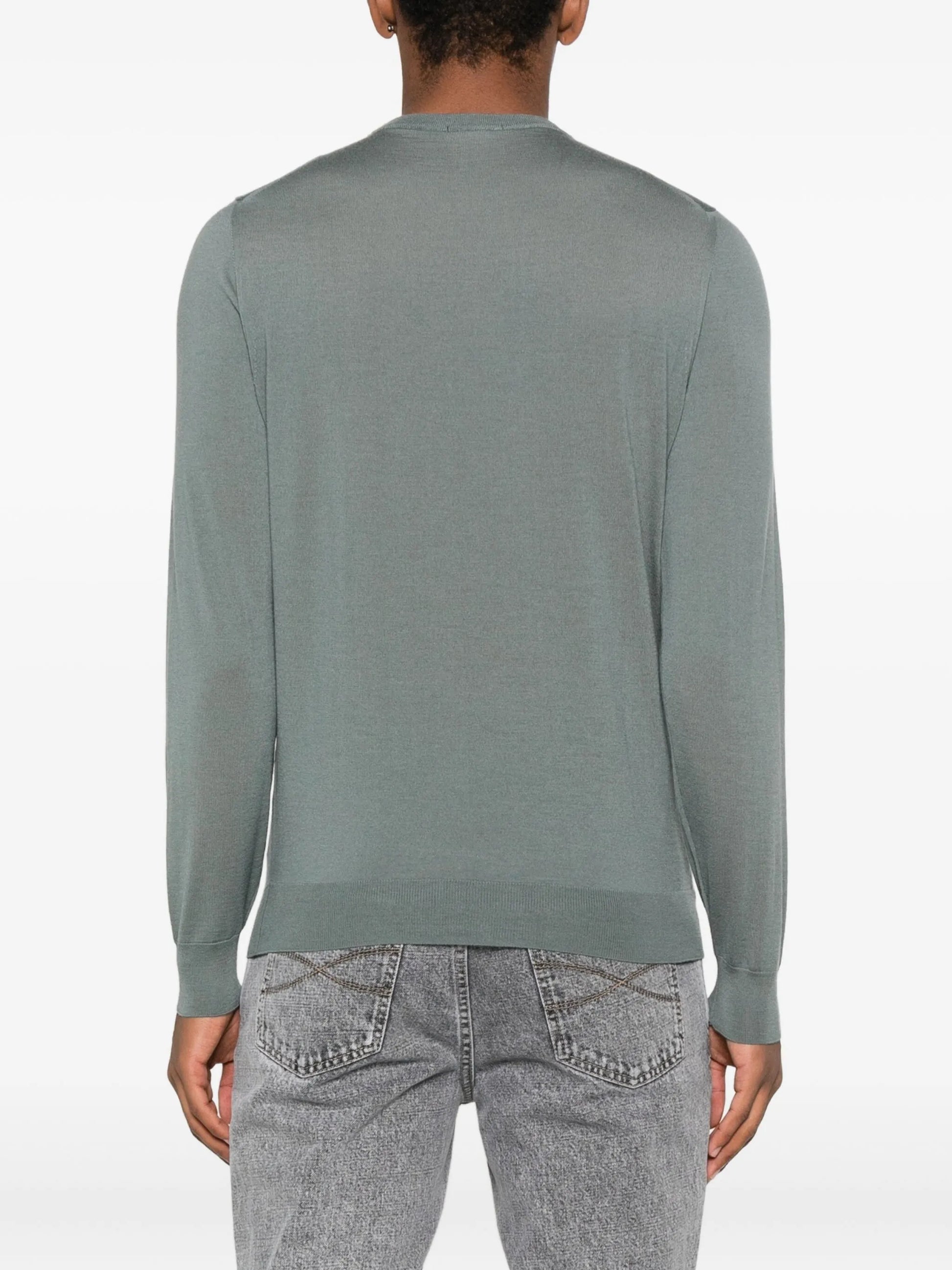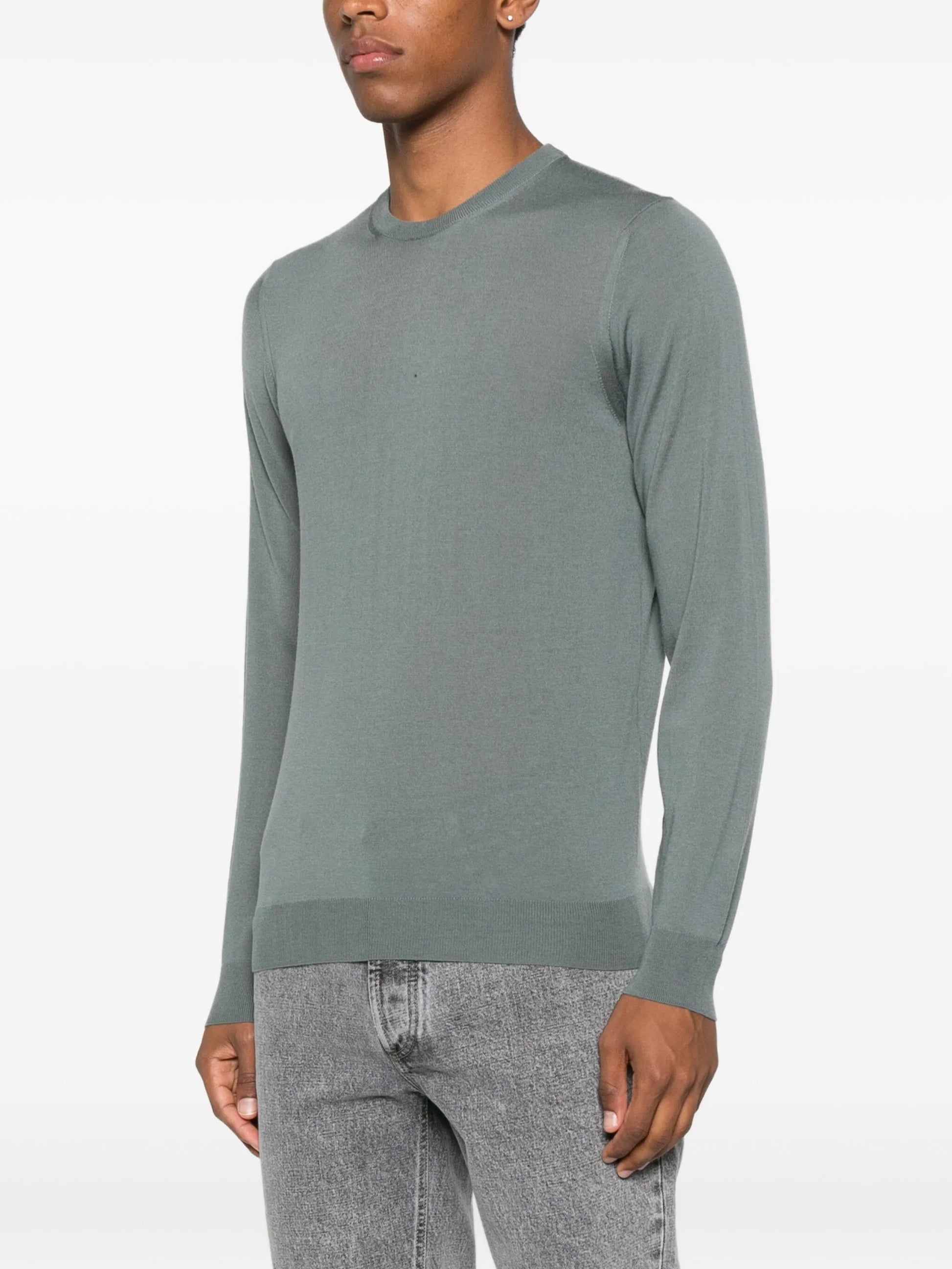 Maglione girocollo in lana merino verde salvia