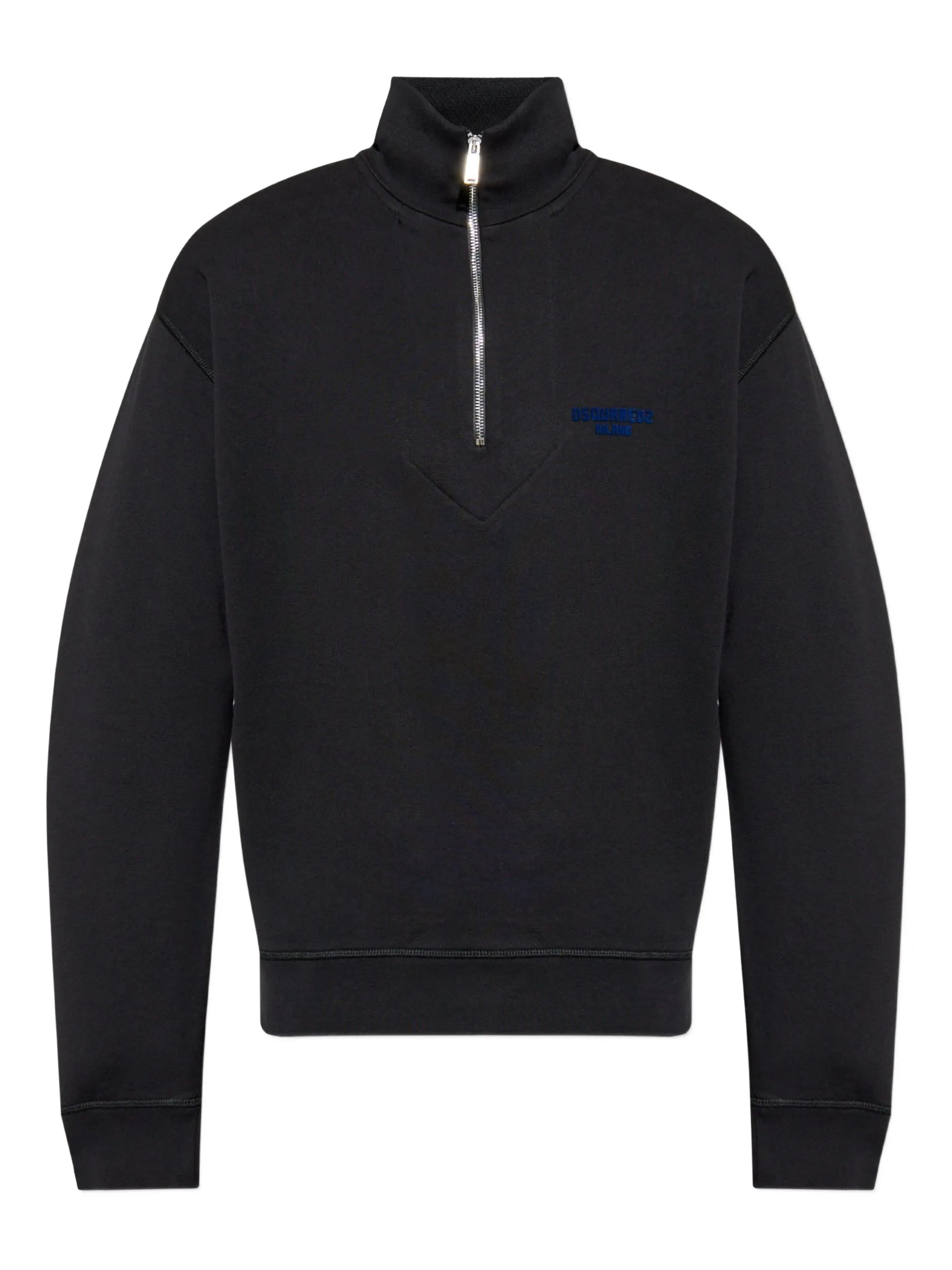 La felpa con collo alto e mezza zip, ideale per costruire i look a strati della mezza stagione. Il modello è realizzato in cotone pregiato al tatto con bordi a costine che definiscono la vestibilità. Personalizzata con la stampa Dsquared2 Milano sul petto.