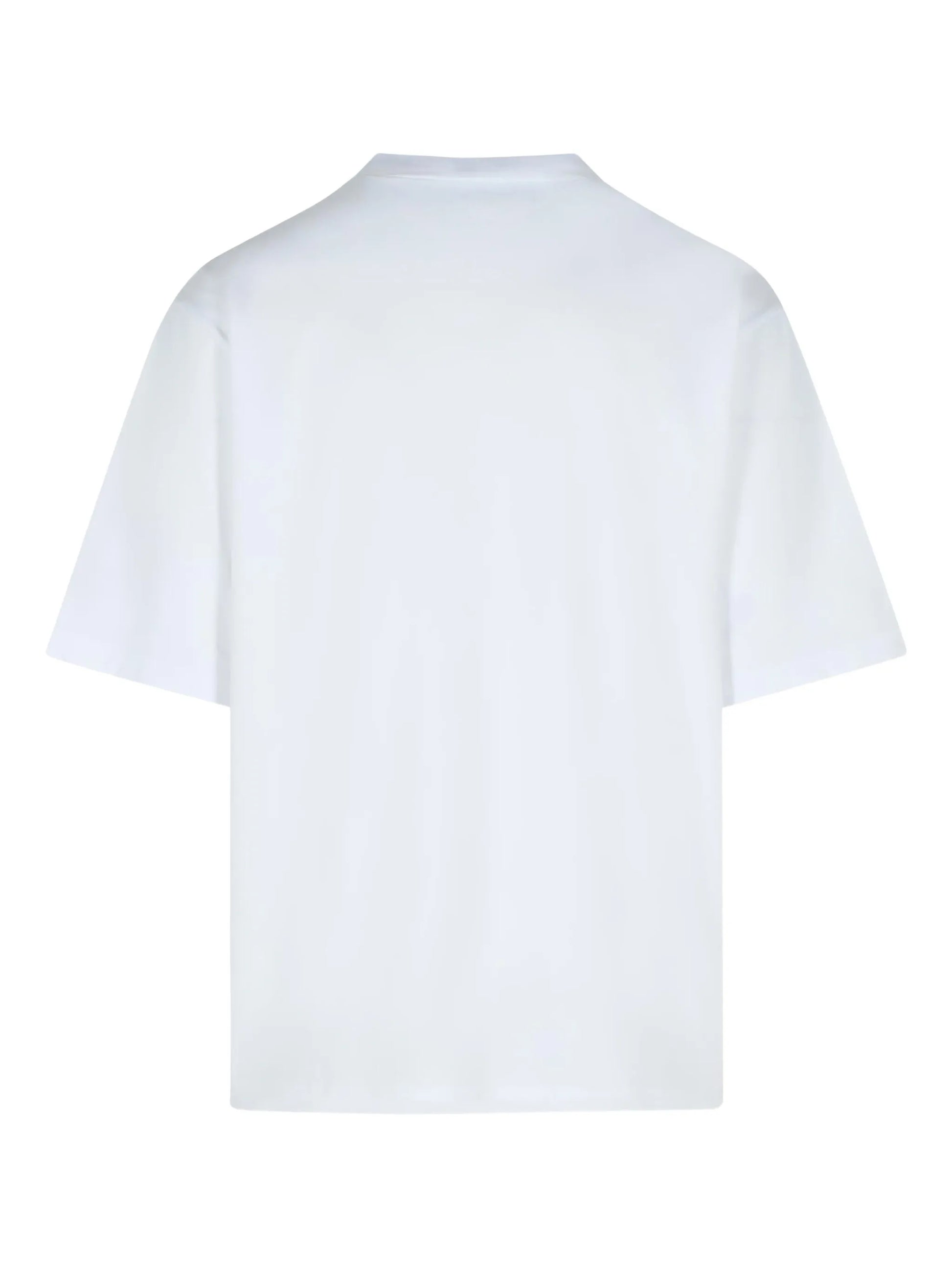 T-Shirt bianco girocollo a coste bordi con effetto vissuto stampa con logo maniche corte cotone