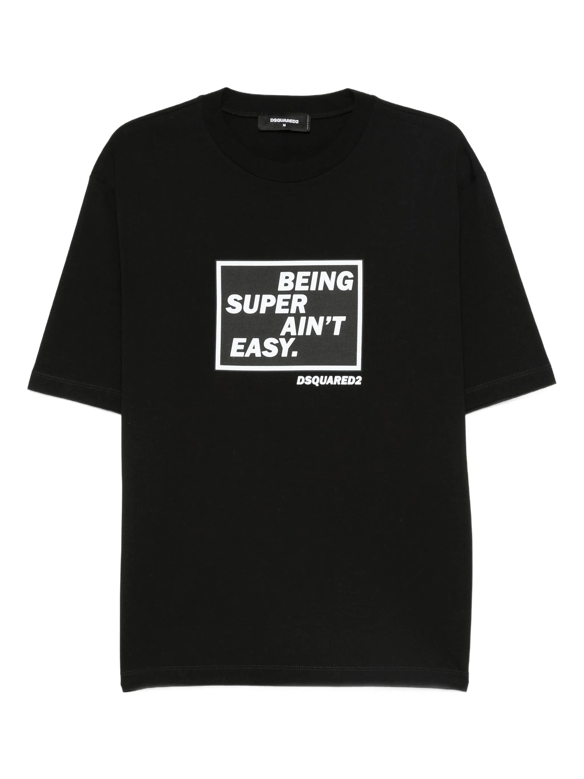 DSQUARED2 T-shirt con stampa nero maniche corte girocollo stampa con slogan cotone