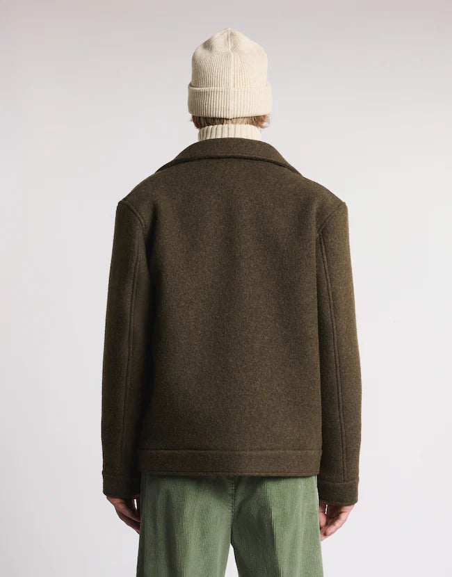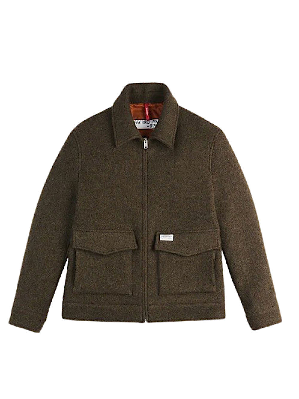 Truck Jacket foderata realizzata in doppio panno misto lana mélange con collo a camicia. Questo modello è caratterizzato da tasche a toppa e a doppia entrata con pattina e una chiusura con zip. Completa il capo l'etichetta Fay Archive.
