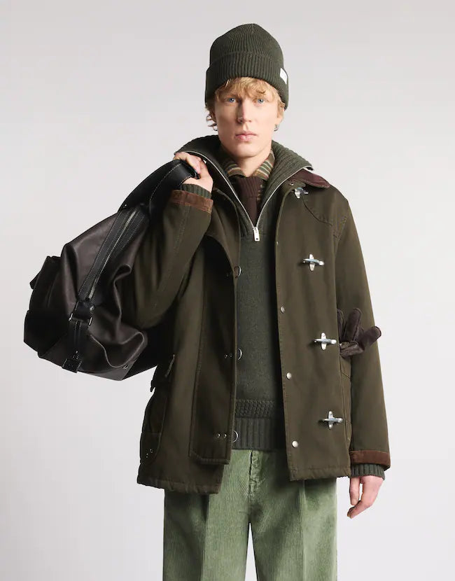 L’iconico 4 Ganci evolve costantemente senza perdere il dna workwear che lo rende un cult dagli anni Ottanta. Ispirato alle divise dei pompieri americani, è caratterizzato dall’inconfondibile chiusura con ganci in metallo, dettagli in crosta e colletto in velluto. Questa versione, realizzata in cover di cotone, presenta un'imbottitura in ovatta e una fodera trapuntata con motivo cipolla.