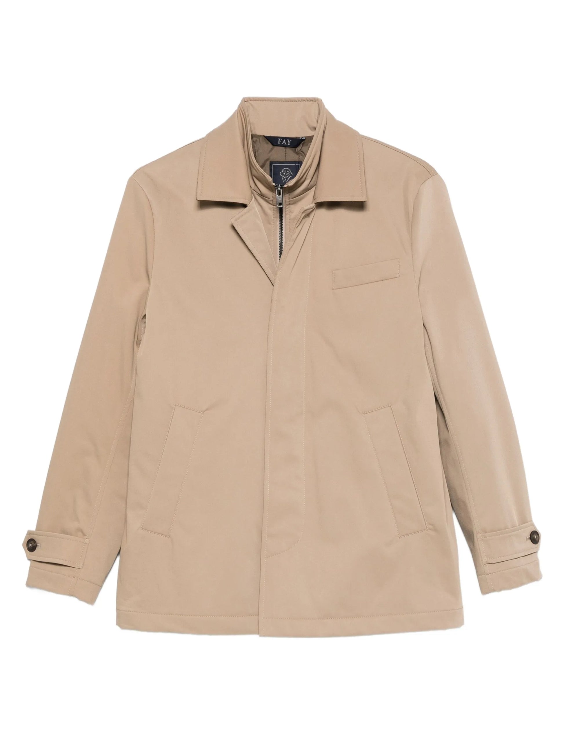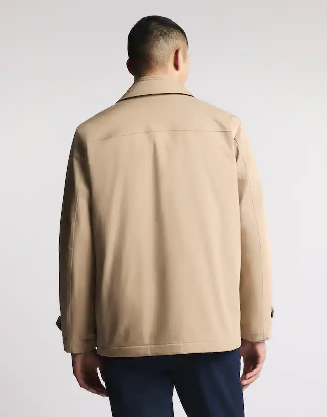 Interprete contemporaneo della logica del vestire day to day, il Morning Coat è l'iconico capospalla con costruzione double front dall’eleganza disinvolta e versatile. Questa nuova versione corta, imbottita in ovatta, è realizzata in gabardine tecnico con trattamento antigoccia. Con tasche a filetto e fondo manica con fascetta e bottone, presenta una chiusura con zip e bottoni nascosti che rimandano al mondo degli impermeabili british. Completa il capo un taschino interno