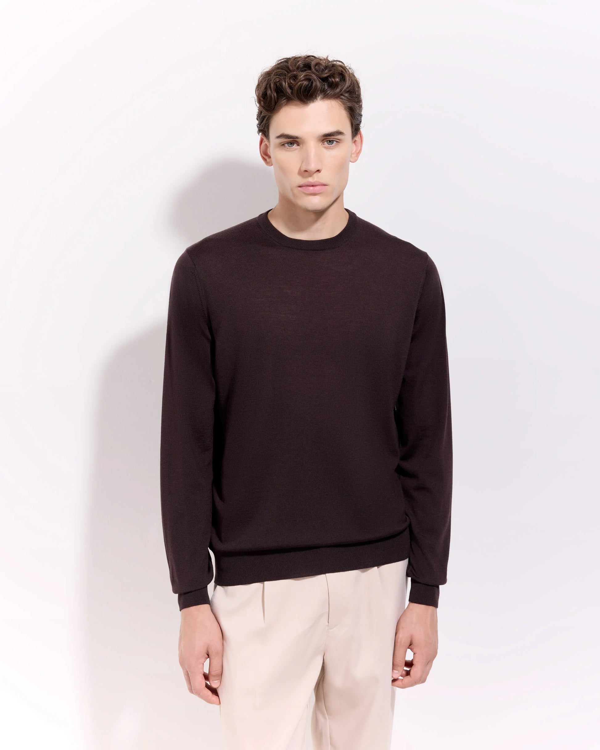 Il girocollo è un capo regolare e leggero che combina eleganza e comfort. Realizzato in Royal Merino, questo girocollo offre una morbidezza eccezionale e una finitura raffinata. Il colletto a giro è ideale per un look sofisticato e versatile, perfetto per diverse occasioni. La struttura compatta garantisce una vestibilità impeccabile, rendendolo adatto per essere indossato da solo o in strati. Grazie al suo design semplice e alla qualità dei materiali, questo girocollo è un must-have nel guardaroba di chi cerca uno stile raffinato e pratico, capace di adattarsi a qualsiasi situazione.