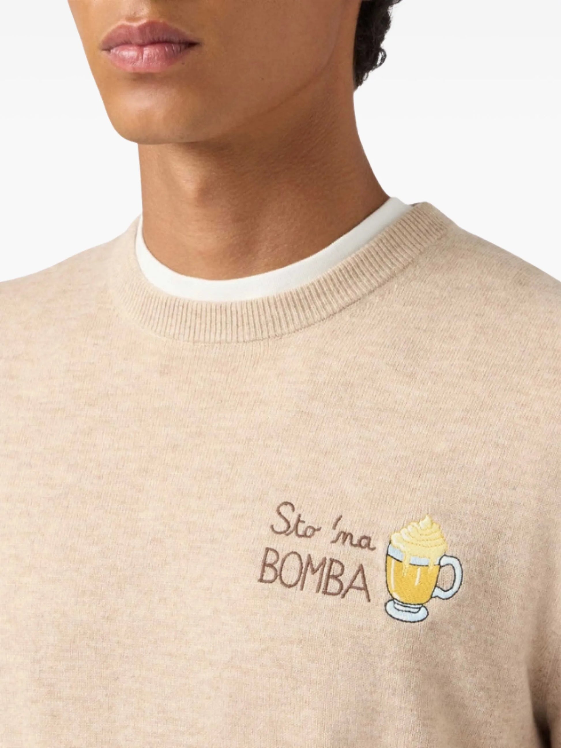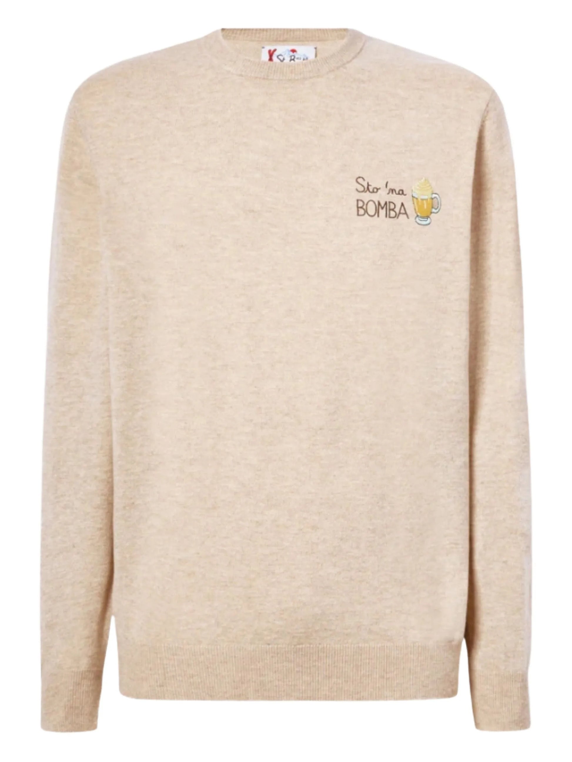 Maglione a girocollo, misto cashmere, maniche lunghe, fondo e polsi a coste, ricamo polso St. Barth, ricamo punto cuore Sto na bomba.