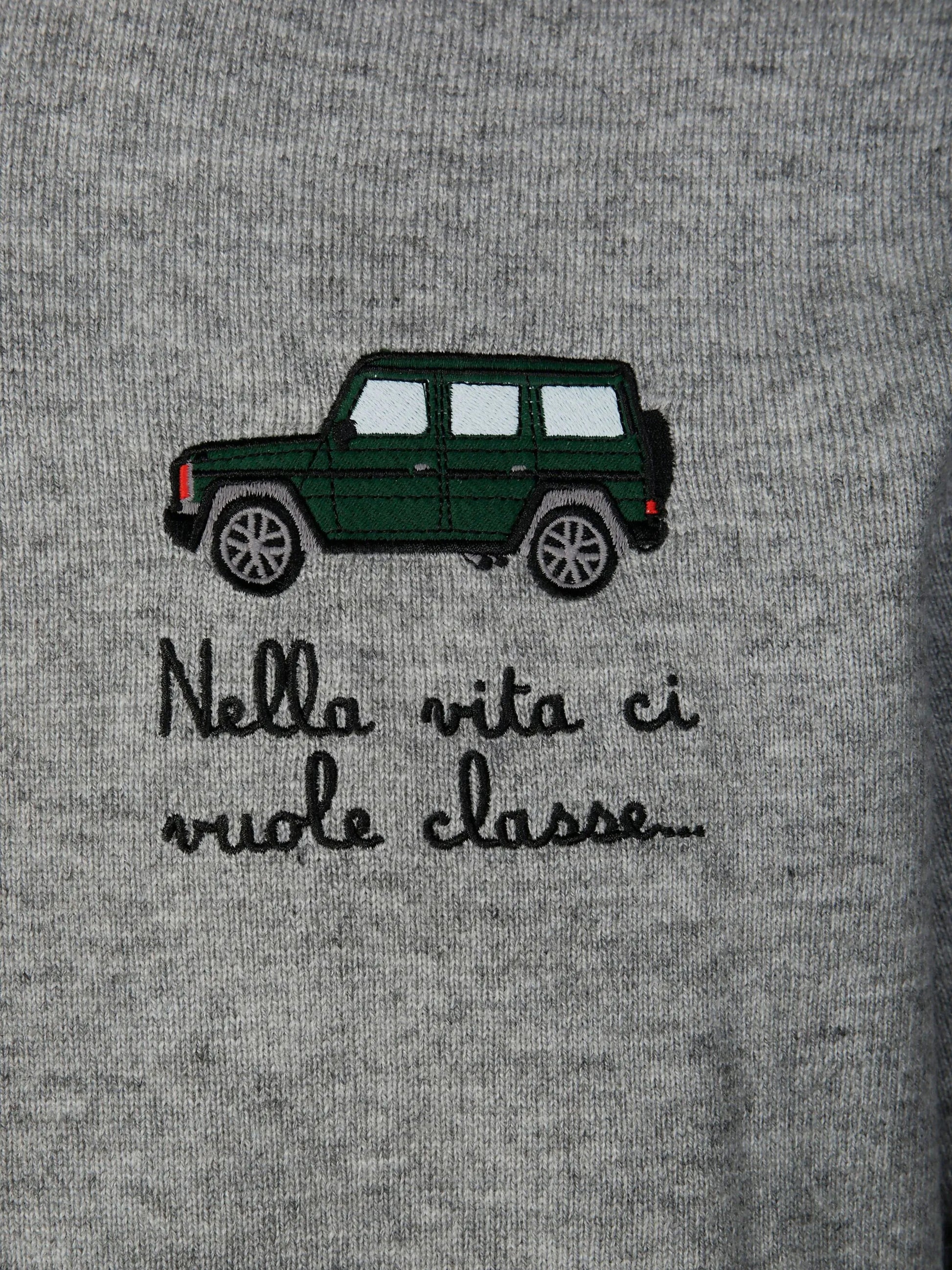 Maglione a girocollo, misto cashmere, maniche lunghe, fondo e polsi a coste, ricamo polso St. Barth., ricamo punto cuore macchina e nella vita ci vuole classe