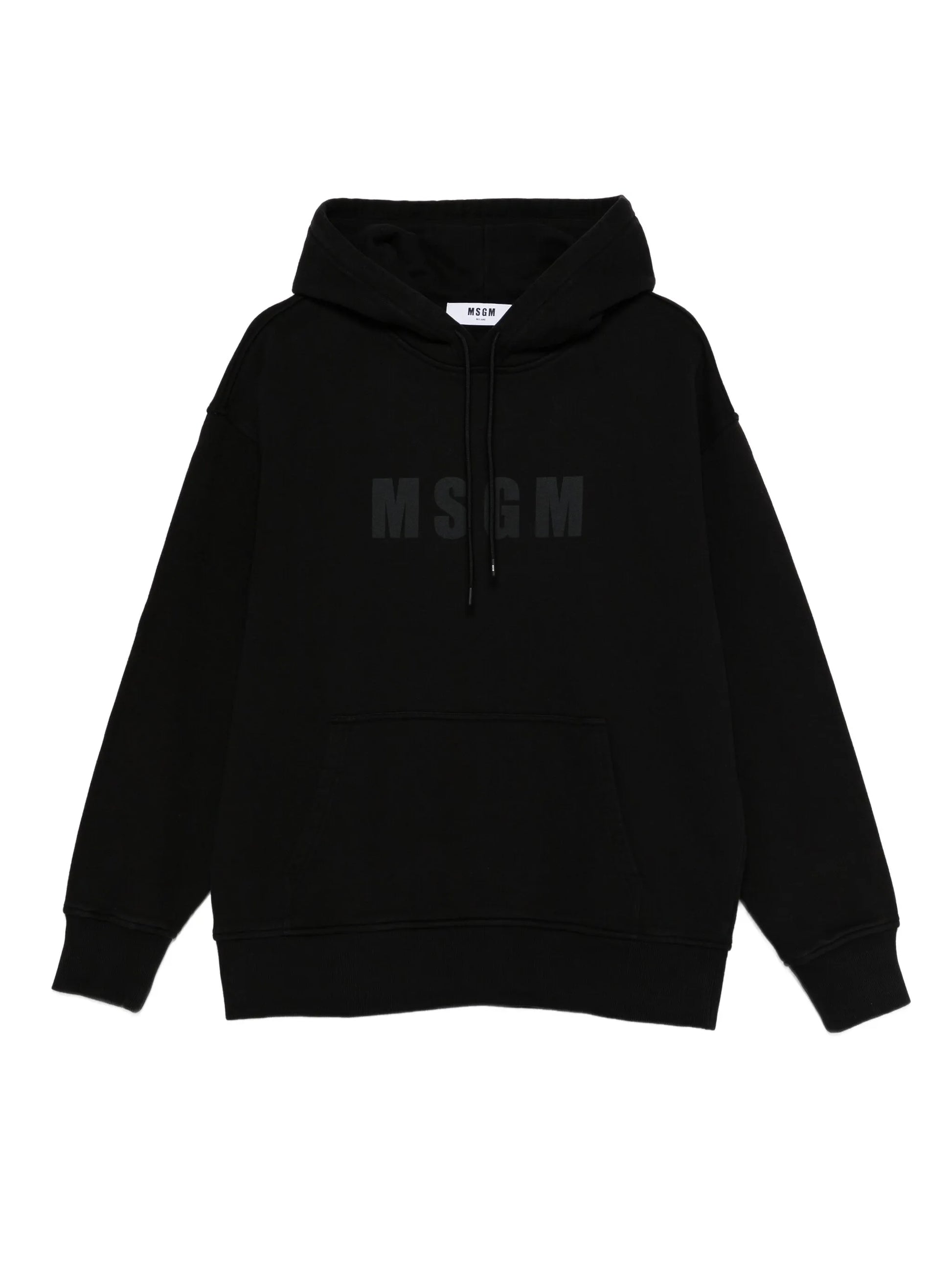 Felpa in jersey di cotone lavato con stampa logo MSGM a contrasto sul davanti. Cappuccio con coulisse, orlo e polsini a costine. Tasca a marsupio frontale.