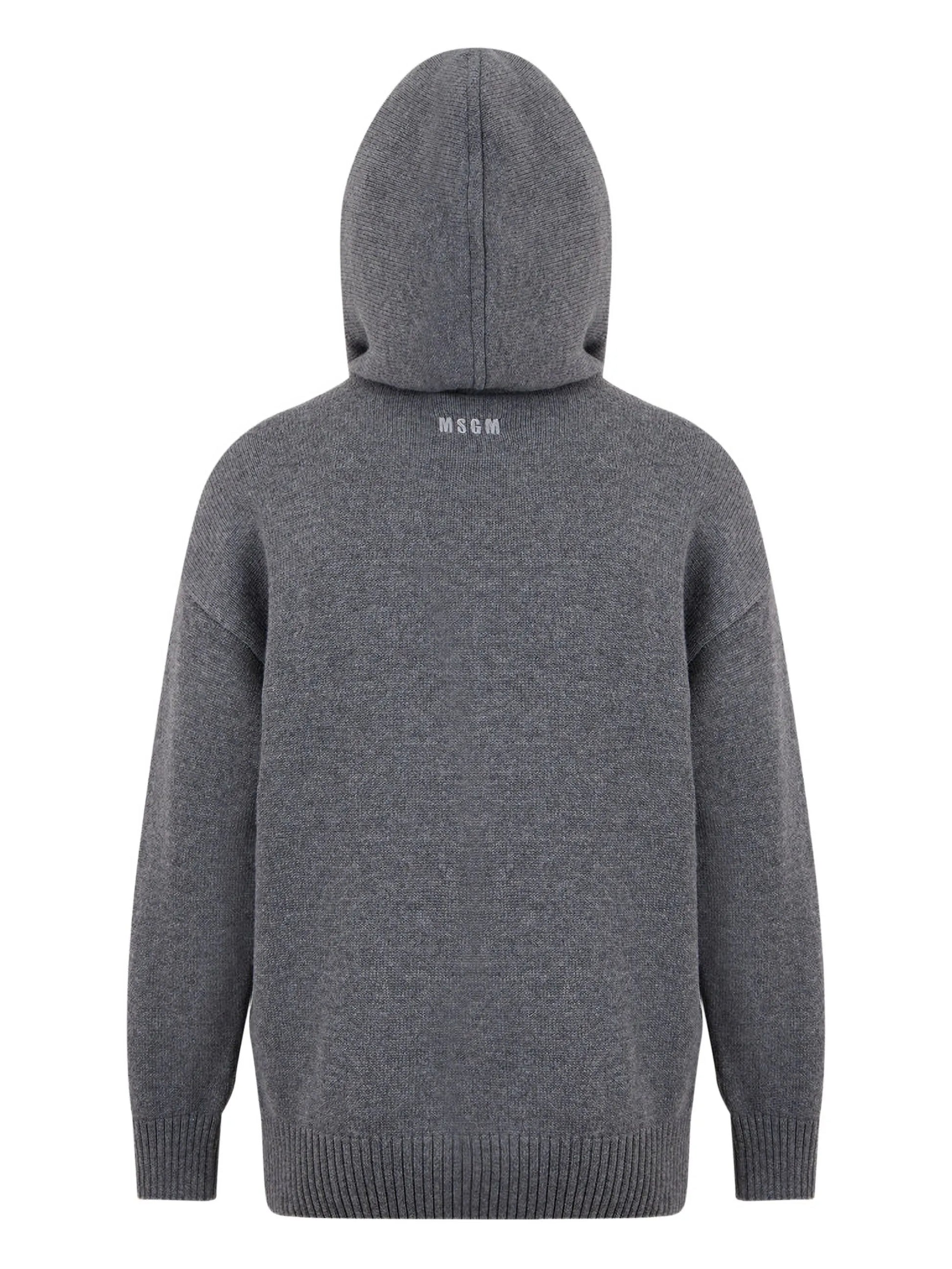 Felpa in maglia con cappuccio in misto cachemire con patch “TheMwave” ricamato a contrasto sul petto. Cappuccio con coulisse regolabile, tasca a marsupio sul davanti, polsi e fondo a costine. Vestibilità oversize.