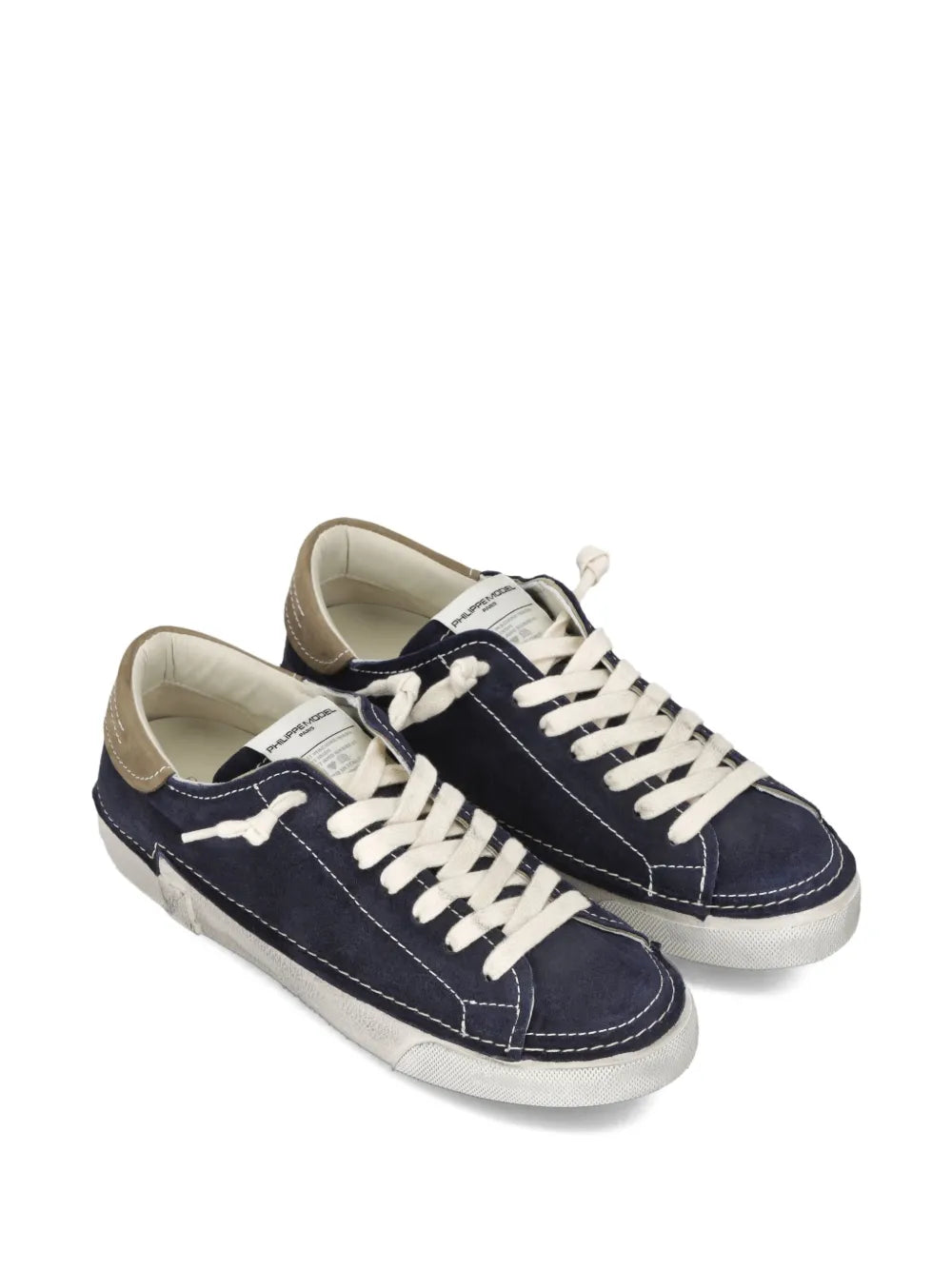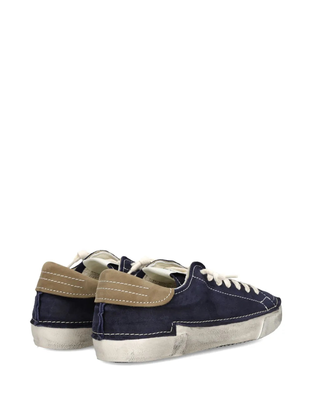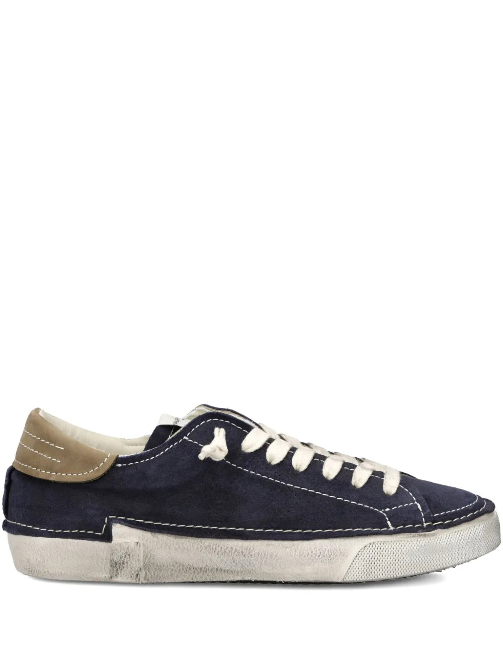 Sneaker low in pelle scamosciata con cucitura con sporgente. Soletta interna imbottita e fodera traspirante in spugna di cotone. Fasciatura rifinita artigianalmente. Suola in gomma.